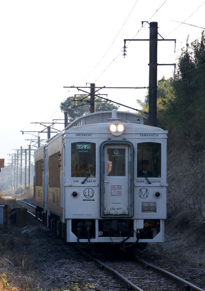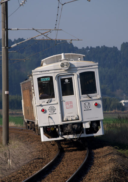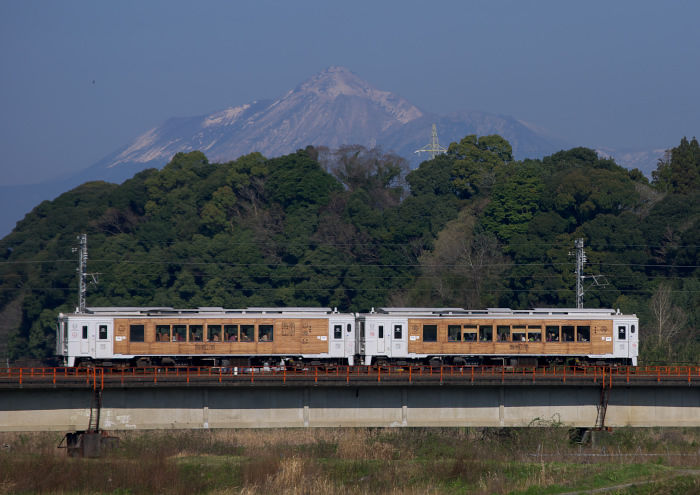 まさか、近場にこんなポイントがあったなんて!! 今まで何度も通った事のある場所なんですが、これまでは天候の関係等で霧島が見えてなかったのかな?とにかく今日はここしかないと判断し、予定通りに餅原で下りを撮影した後は駅にはいかずに、このポイントで待つこと30分…… 遂に満足出来る霧島とのコラボショットを撮る事が出来ました♪ いや~ これからこのポイントは要チェックですね。