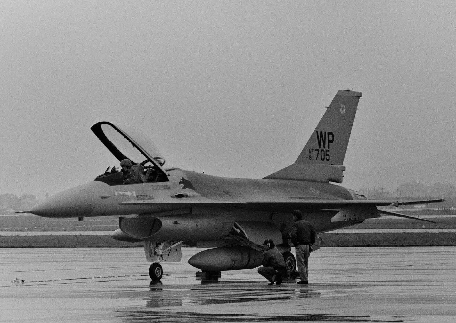 雨の築城基地航空祭で地上展示されたF-16A WP/705