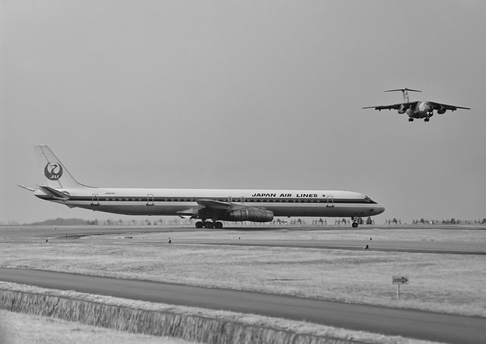 これまた懐かしい機材の紹介となりましたが、写真のDC-8-61は全長約48mという非常に長い胴体が特徴で、2枚目のショットからは、かなり距離が有るとは言えアプローチするC-1が小さくみえますね